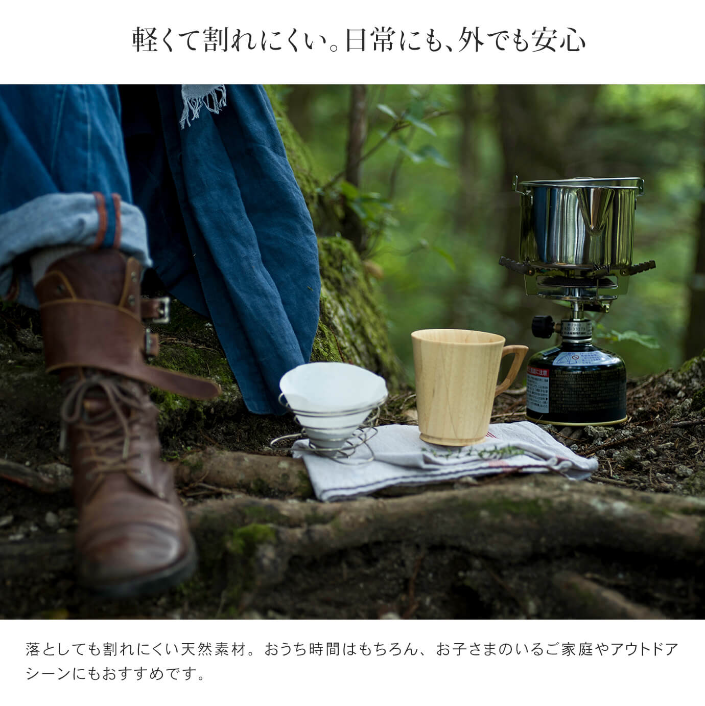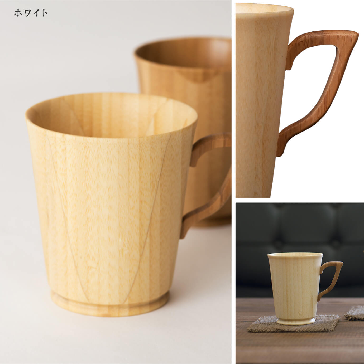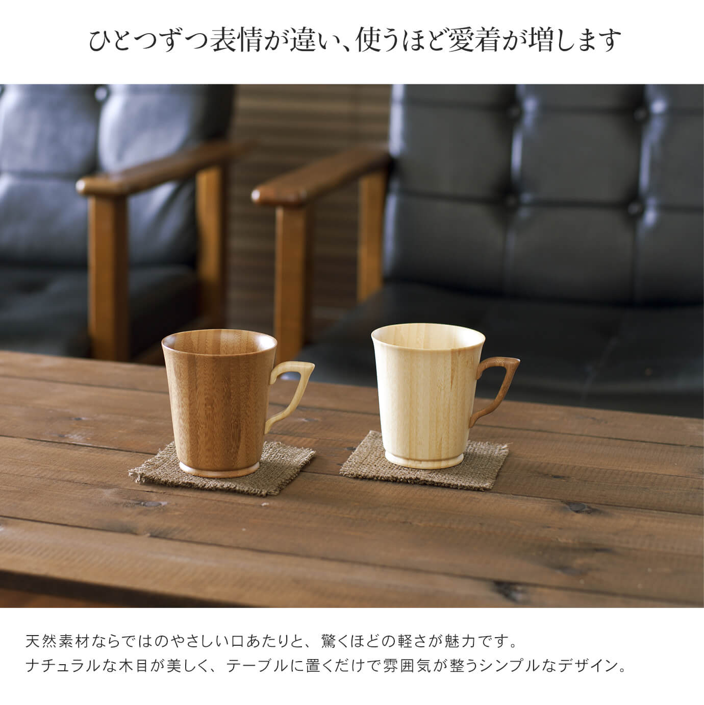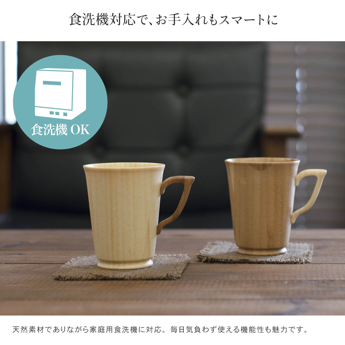 天然素材の質感を失わない独自のコーティング技術によって、コーヒーなど色の濃い飲み物でも色移りや染み込みがありません。