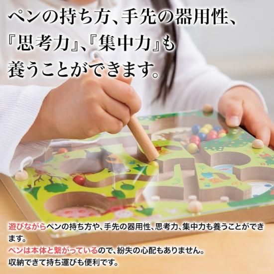 また磁石のついたペンで木の実を動かすので、数の数え方や色の認識にも役立ちます。