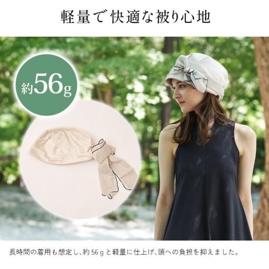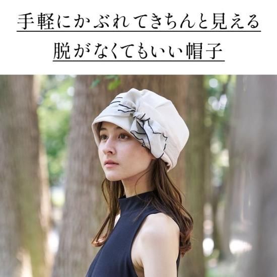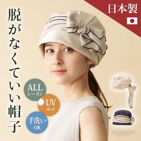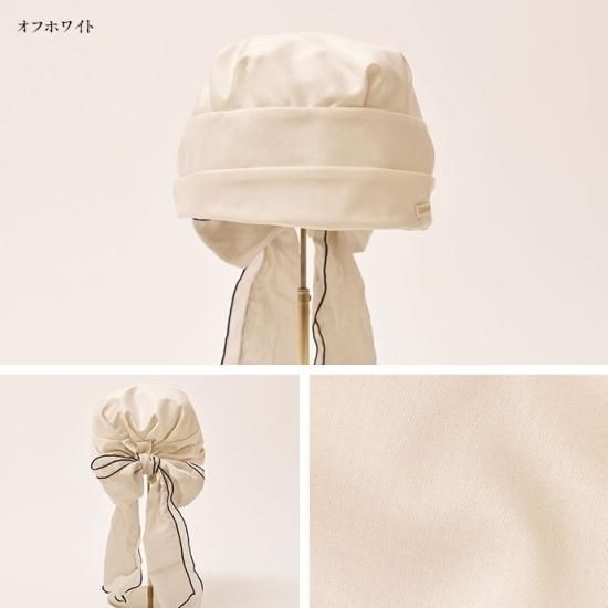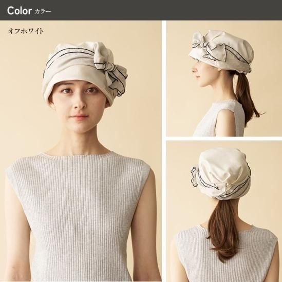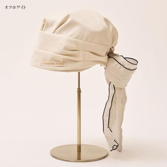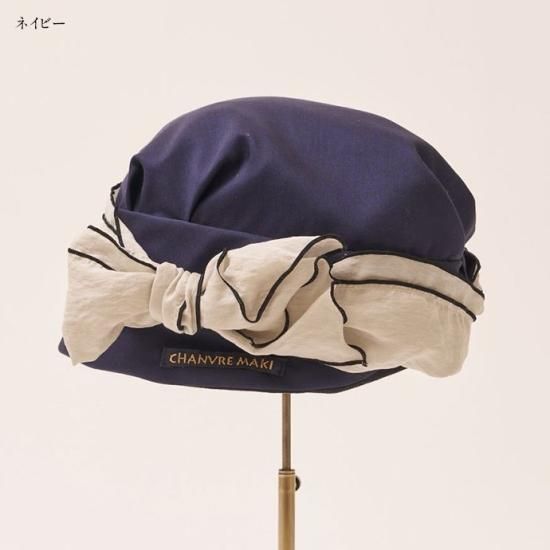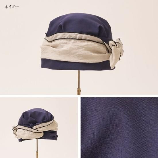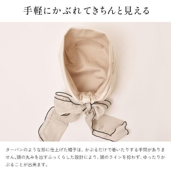 ターバンのような形に仕上げた帽子は、かぶるだけで巻いたりする手間がありません。頭の丸みを出すふっくらした設計により、頭のラインを拾わず、ゆったりかぶることが出来ます。